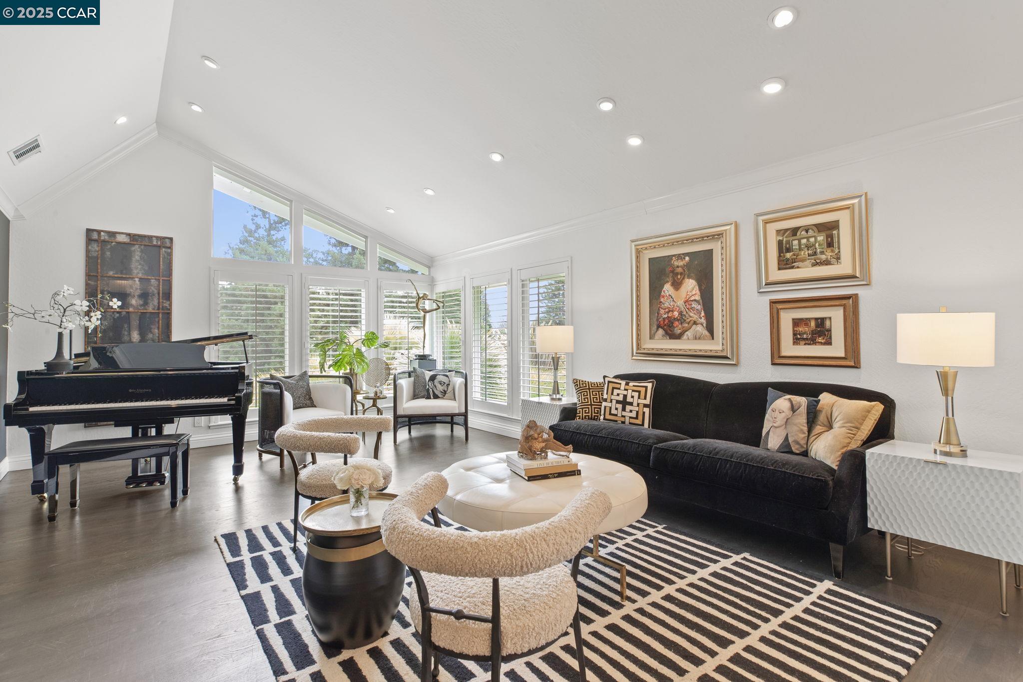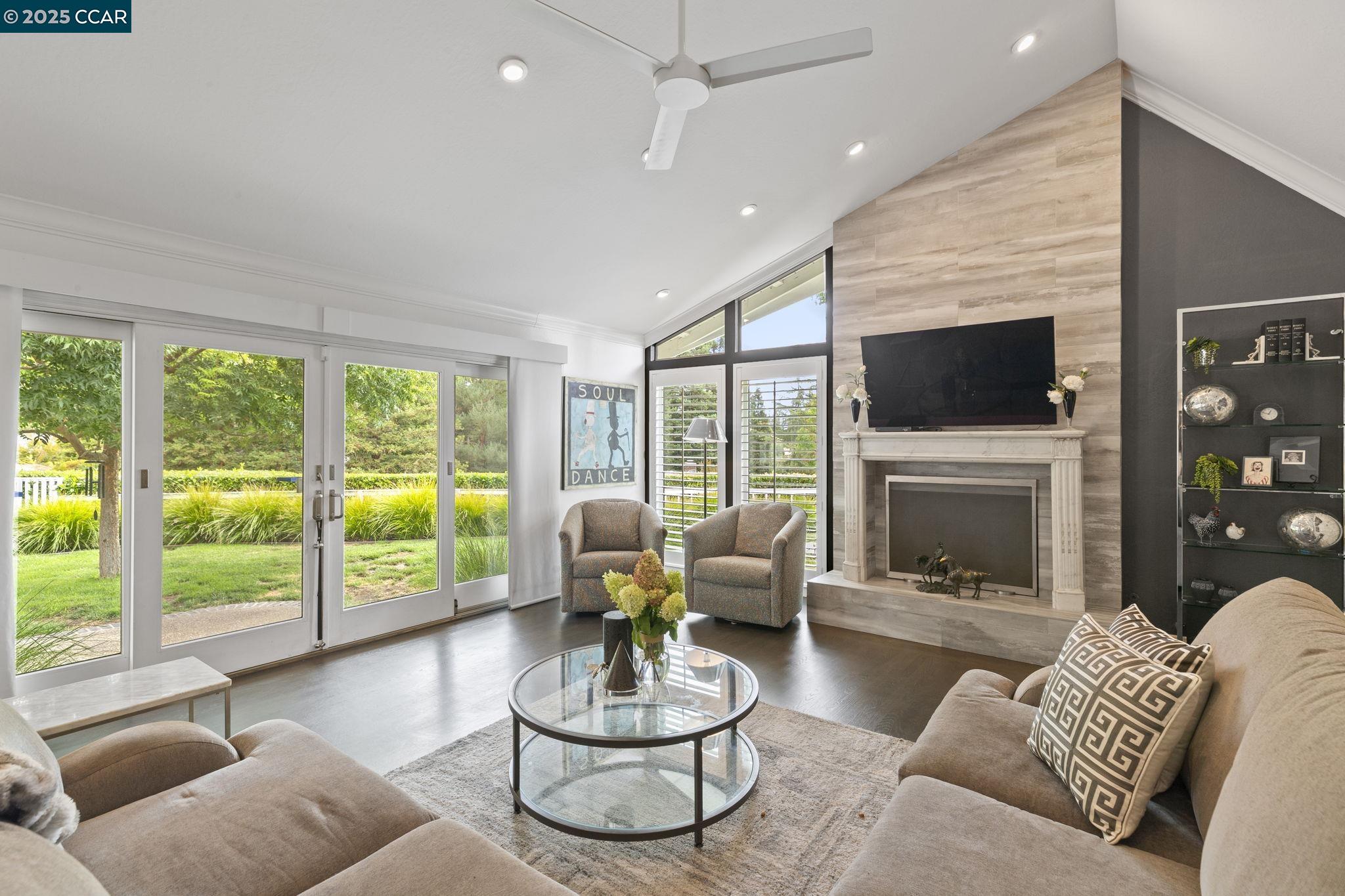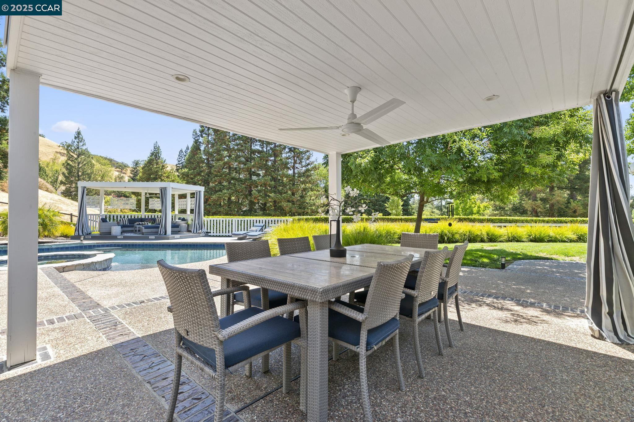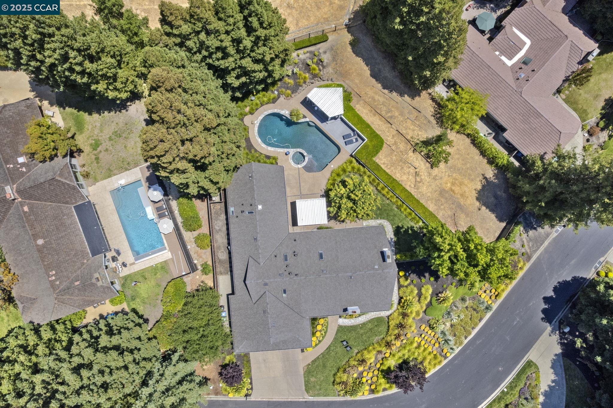 Perched on a serene setting of Bryan Ranch, this remodeled, contemporary stunner is a single-story residence offering a welcoming & spacious 2,819 SqFt of living space, set on an expansive .41 Acre lot. With 4 bedrms & 2 bathrms, this home provides ample room for daily living & is designed for comfort & functionality w/high ceilings, floor-to-ceiling windows, wood floors & a cozy fireplace. Walls of glass showcasing a resort-style backyard oasis & the surrounding hills with no rear neighbors & a desirable court location, privacy is the ultimate luxury. Gorgeous kitchen w/shaker cabinets, marble backsplash & slab counters, commercial style appliances: double ovens, warming drawer, gas cooktop & pantry. Casual dining area & spacious family room surrounded by walls of windows opens to the large backyard. Lux. primary suite w/French doors to rear yard w/beautiful views. New primary bath w/porcelain slab shower & countertops, soaking tub, dual sinks & makeup vanity. 3 additional bedrooms, new hall/pool bath w/porcelain slabs, waterfall counter, tile wainscoting, soaking tub & door to backyard. A true resort for outdoor living: peaceful & unobstructed views, pool, spa & private patios for leisure or entertaining. Room for poss. ADU.Be prepared to fall in love! Highly-acclaimed SRVUSD.