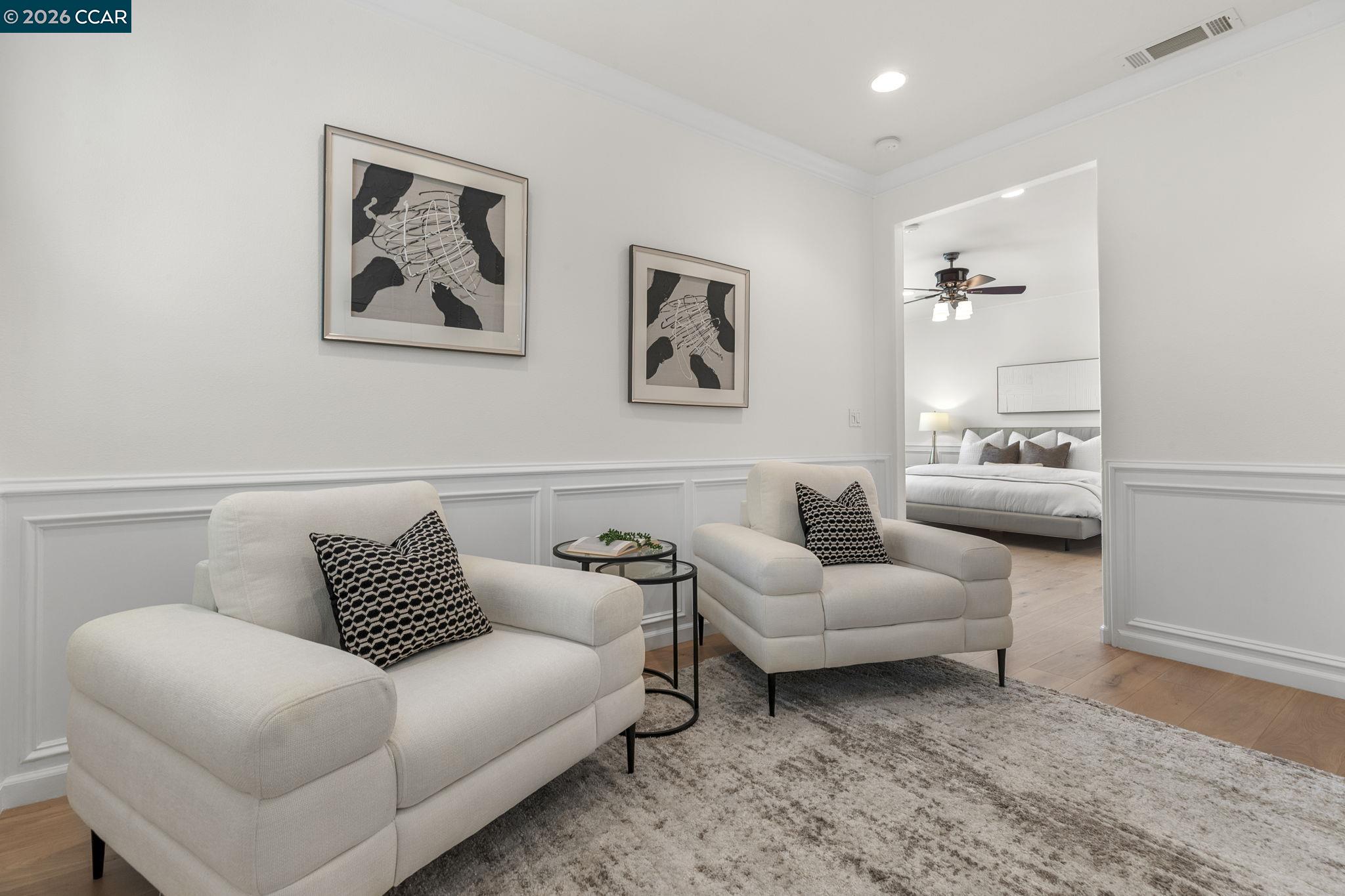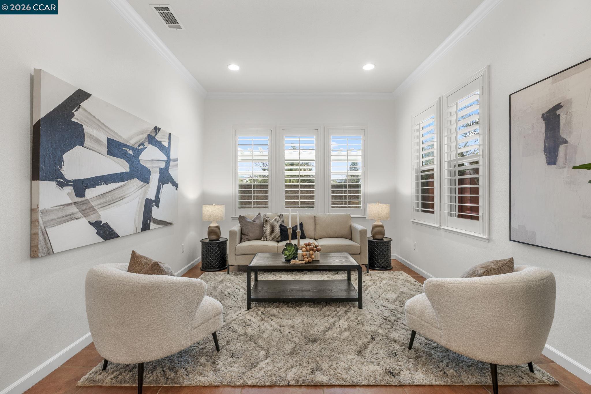 Former model home redefining luxury in the prestigious Monterosso community. Backing onto serene open space, this light and bright home offers both privacy and breathtaking views--a true sanctuary of comfort, style and sophistication. Inside, discover highly upgraded features, including a chef's kitchen with Wolf range, Wolf double ovens, Subzero refrigerator, granite countertops and custom cabinetry. Elegant wainscoting, plantation shutters, crown molding, built-ins, and wrought iron details add classic charm throughout, while hardwood flooring upstairs and a surround sound system enhance modern living. The main level offers a guest suite with full bath, ideal for multi-generational living or hosting. Large loft/bonus room with balcony offers endless possibilities. Escape to serene views in the spacious primary suite + a retreat with a cozy flex room with fireplace, custom built-ins, and spa-like ensuite. Two additional bedrooms upstairs, one w/ a balcony, and two full bathrooms. Low-maintenance backyard invites relaxation or entertaining w/ a spacious patio, outdoor fireplace & serene open space. 2-car garage w/ EV charger. Walk to K-8 top-rated schools! Convenient to shopping, dining, and scenic trails, this home truly has it all!