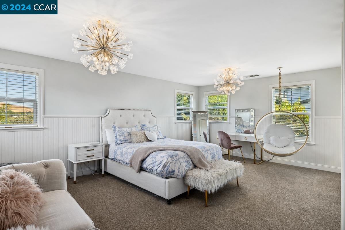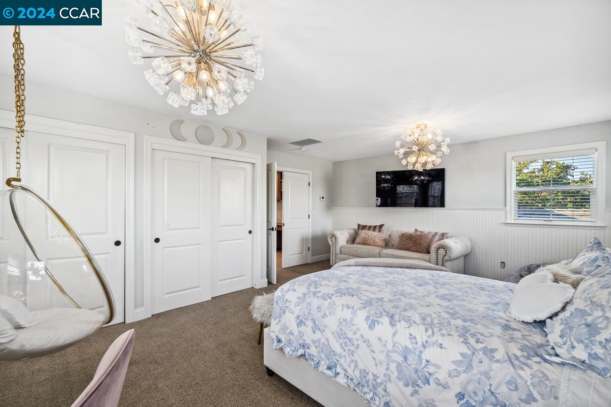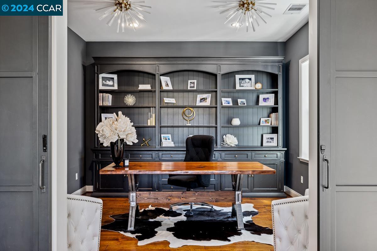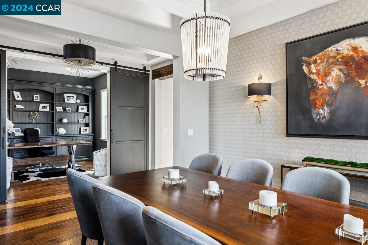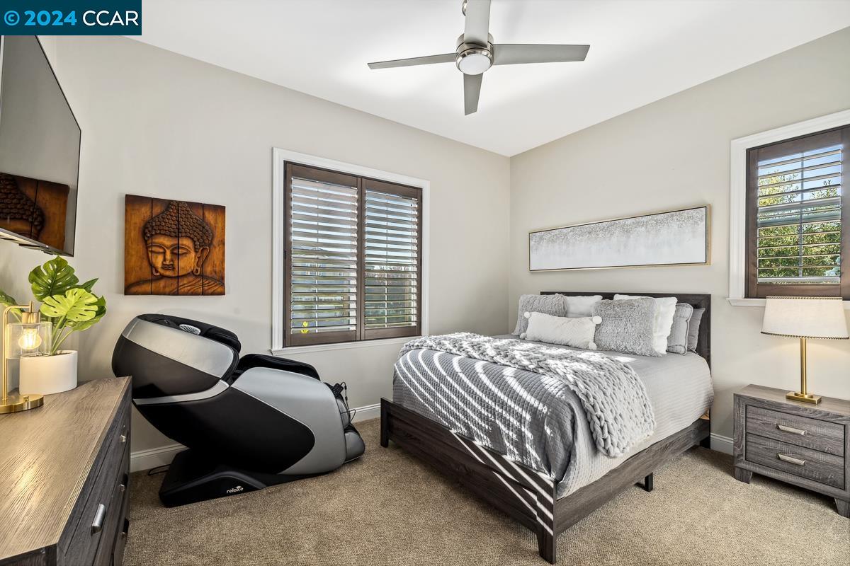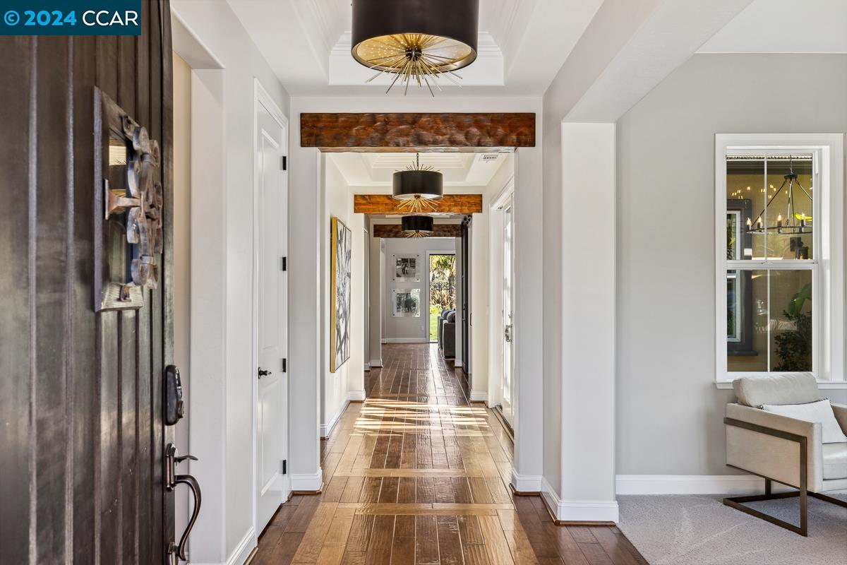 Exquisite VIEW home w/panoramic Mt. Diablo vistas, where luxury meets comfort, a rare find in a coveted location. Beautifully remodeled w/ high-end designer finishes throughout its primarily single-story floorplan, ensuring ease of living, with only a jr. suite upstairs for added privacy. Step inside to discover an open-concept layout, featuring a great room with walls of glass, cozy fireplace and abundance of natural light. Chef's dream kitchen is adorned with natural stone counters, waterfall island, premium appliances & sophisticated cabinetry. Dramatic formal dining room has a custom temp. control wine wall & butler's prep area, offering the perfect setting for intimate dinners or grand entertaining.The primary suite is a sanctuary, offering amazing sunrises, walls of glass leading to the relaxing backyard, lavish bathroom w/steam shower & ample closet space. Additional bedrooms are generously sized, providing comfort & privacy. The spacious office has tranquil courtyard views for work at home days. .44 Acre lot offers a tranquil oasis w/ stunning views of Mt. Diablo & open space. Enjoy the resort-style yard w/pool, spa, pavilion, outdoor kitchen, fire pit, putting green & sport court. This property offers an unparalleled living experience with its impeccable design.
