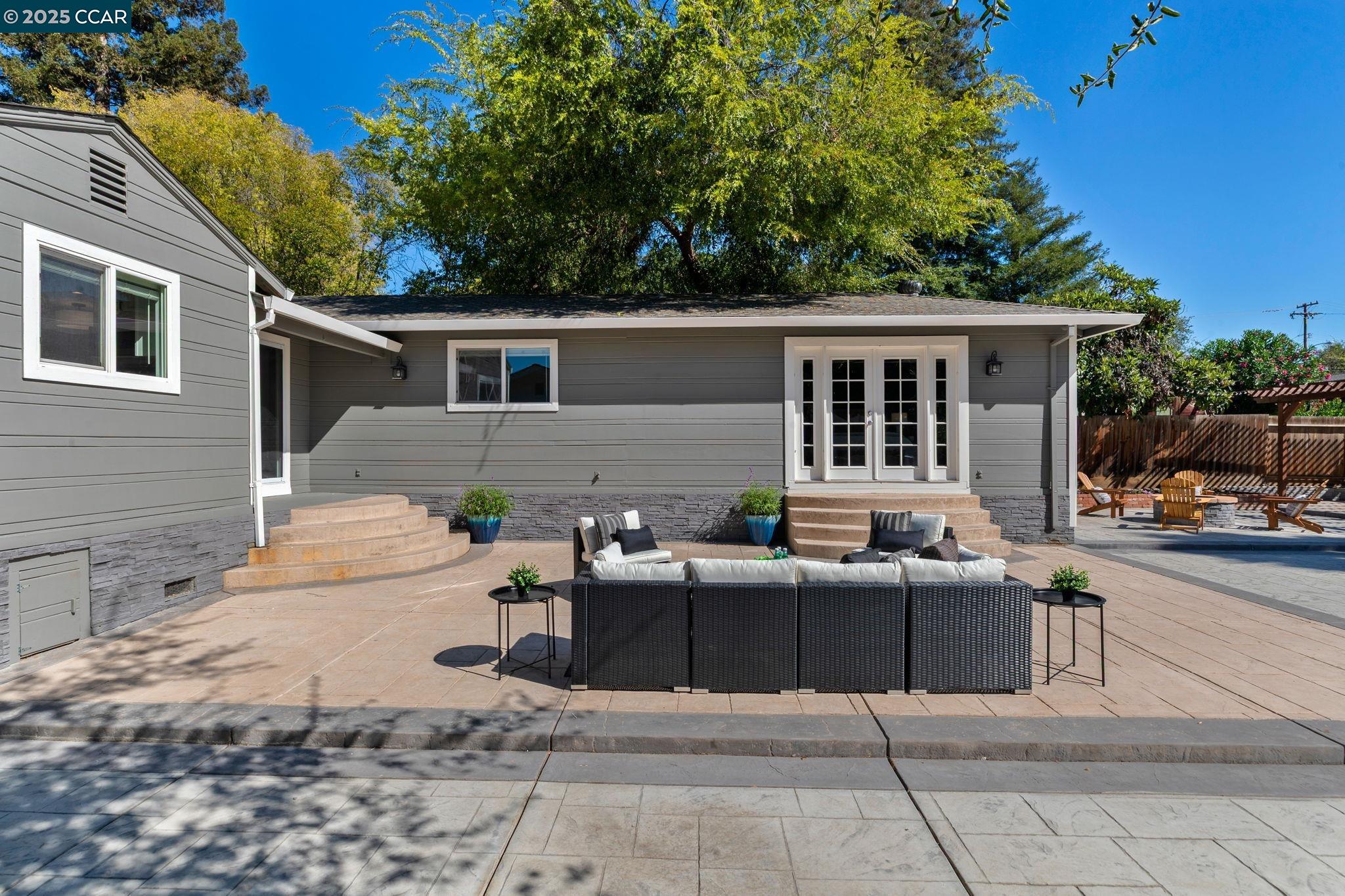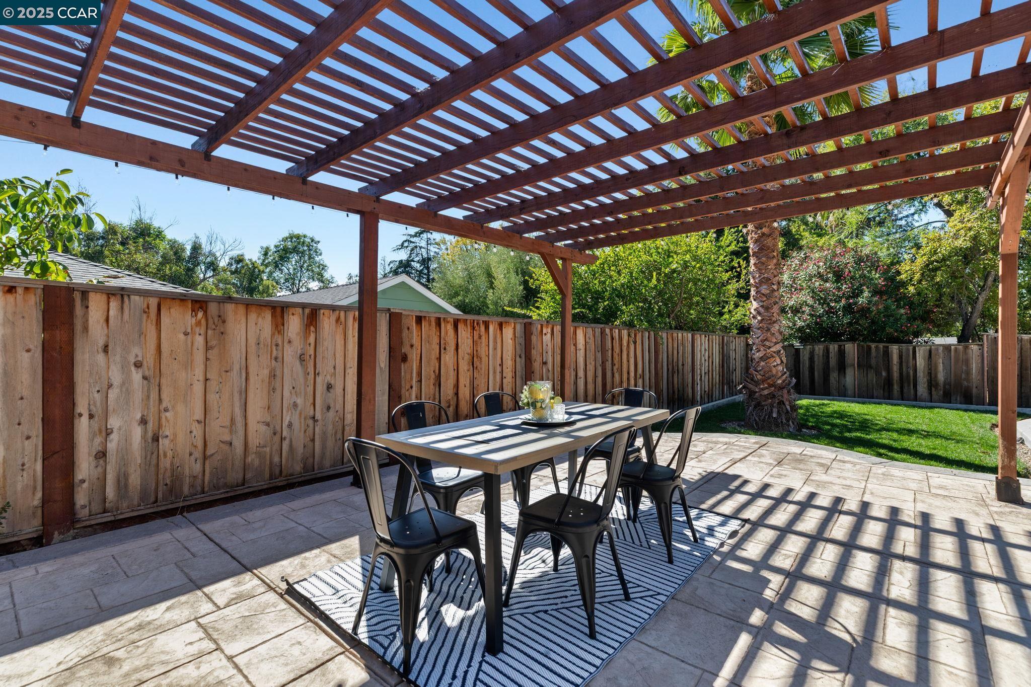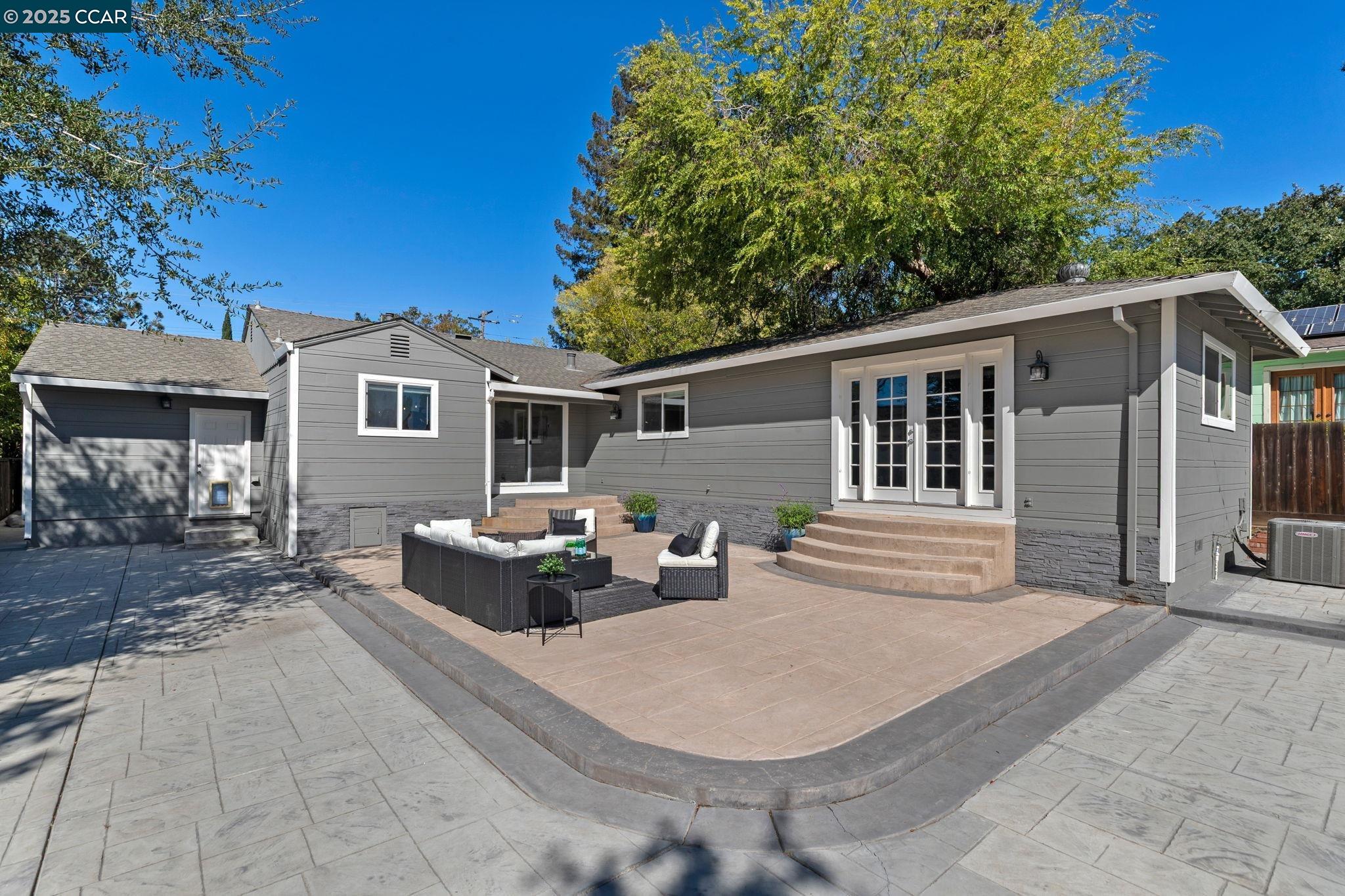Welcome to this storybook single-story home, full of charm and character. Boasting 4 bedrooms and 2 full bathrooms, this beautifully updated residence is just what you've been looking for. Step into the inviting living room, featuring a cozy fireplace surrounded by built-in display cabinets and a picturesque bay window. The kitchen shines with freshly painted white cabinets, granite countertops, a tiled backsplash, and stainless steel appliances. An open floor plan seamlessly connects the kitchen to the dining room--perfect for both everyday living and entertaining. Through the sliding glass door, enjoy the spacious backyard complete with stamped concrete, a fire pit, grass area, market string lights, and a gazebo--ideal for any outdoor activities. The primary suite offers direct access to the yard through French doors, mirrored closet, and abundant natural light. Three additional bedrooms provide flexibility for family, guests, or a home office. Additional highlights include a deep one-car garage, a large driveway, fresh paint in the kitchen, dining room, and fourth bedroom, plus new landscaping and sod. Conveniently located near K-12 schools, BART, shopping, downtown Concord, parks, and more--this home truly has it all!