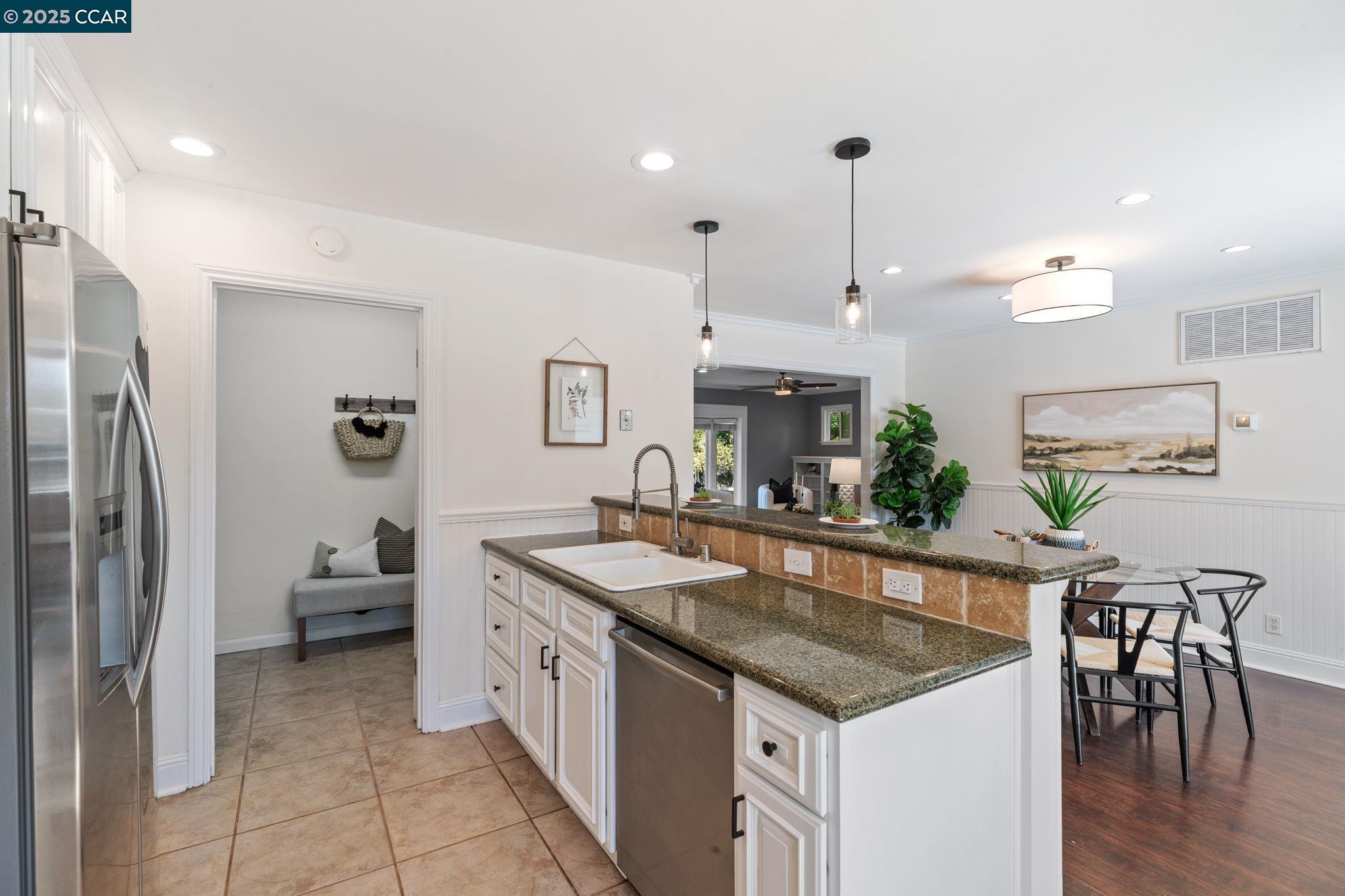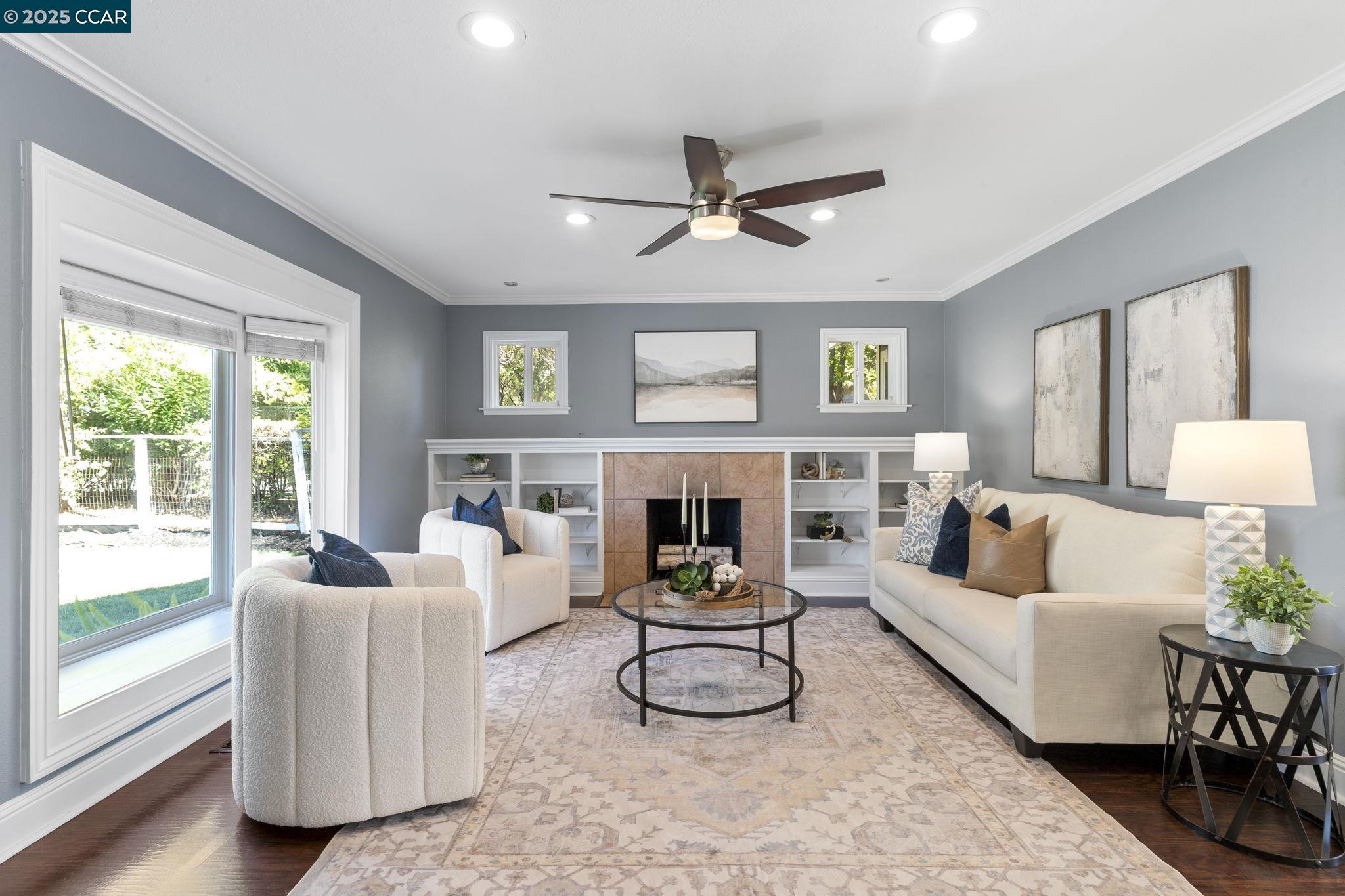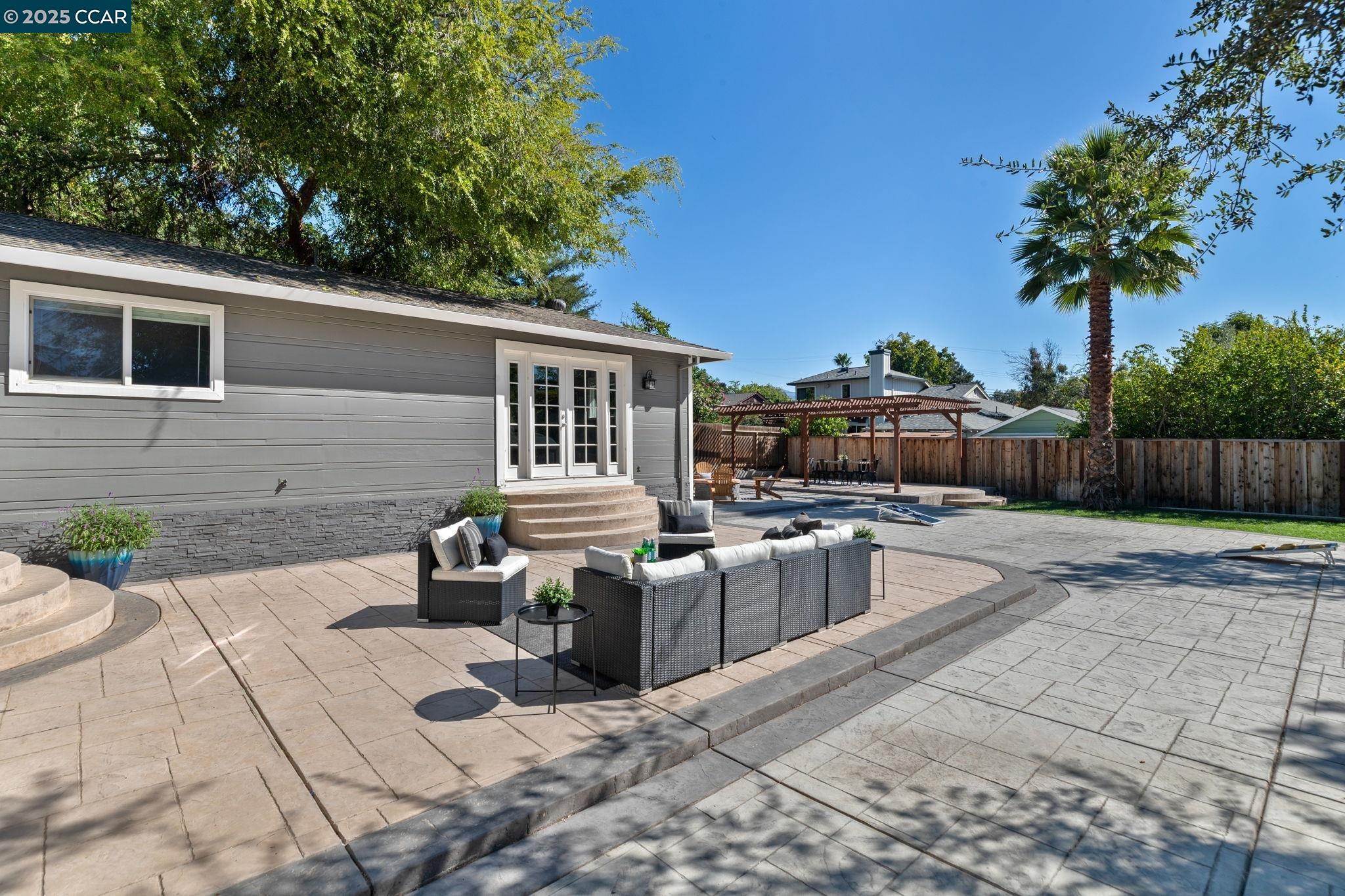 Welcome to this storybook single-story home, full of charm and character. Boasting 4 bedrooms and 2 full bathrooms, this beautifully updated residence is just what you've been looking for. Step into the inviting living room, featuring a cozy fireplace surrounded by built-in display cabinets and a picturesque bay window. The kitchen shines with freshly painted white cabinets, granite countertops, a tiled backsplash, and stainless steel appliances. An open floor plan seamlessly connects the kitchen to the dining room--perfect for both everyday living and entertaining. Through the sliding glass door, enjoy the spacious backyard complete with stamped concrete, a fire pit, grass area, market string lights, and a gazebo--ideal for any outdoor activities. The primary suite offers direct access to the yard through French doors, mirrored closet, and abundant natural light. Three additional bedrooms provide flexibility for family, guests, or a home office. Additional highlights include a deep one-car garage, a large driveway, fresh paint in the kitchen, dining room, and fourth bedroom, plus new landscaping and sod. Conveniently located near K-12 schools, BART, shopping, downtown Concord, parks, and more--this home truly has it all!